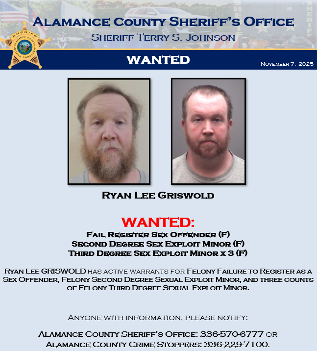 Wanted By: Alamance County Sheriff's Office, Burlington, NC